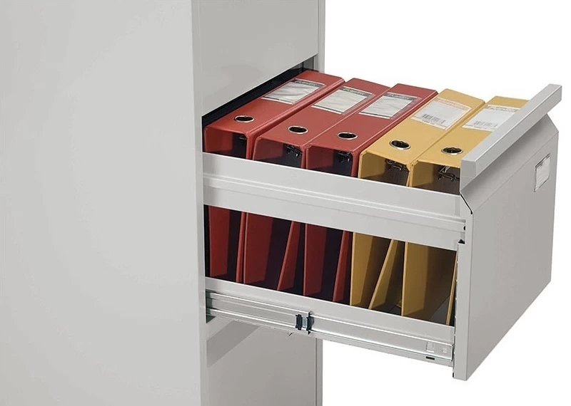 Картотечный шкаф Практик А-43 – это исключительно удобное и необходимое в любом современном офисе оборудование для эффективной работы с документами формата А4, рассчитанное на способ хранения в подвесных папках. О высоком качестве изделия свидетельствует сертификат ГОСТ 16371-2014, а также заключение Государственного санитарно-эпидемиологического надзора о соответствии санитарным нормам.Детали картотеки изготавливаются из качественных сортов стали высокой прочности с расчётом на длительное интенсивное использование. Это доказывают результаты промышленных испытаний: при полноценной загрузке, составляющей 20 кг на ящик, с успехом было проделано более 50 000 открываний. Ящики плавно и без усилий выдвигаются на всю глубину благодаря наличию телескопических направляющих. Для достижения наилучшей устойчивости изделие оснащено антиопрокидывающим устройством, не допускающим возможности выдвинуть два или более ящиков одновременно.