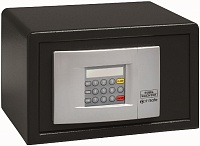 Сейф запирается электронным замком с возможностью вводить как коды пользователей, так и мастер-код администратора. Также возможно установить второй мастер-код для использования сейфа в гостиницах. Замок снабжён приводом автоматического открывания двери, что делает использование сейфа более лёгким и удобным. Питание замка осуществляется от батарей, внешнего источника питания не требуется.