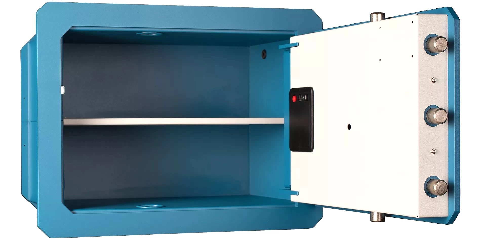 А вскрыть сейф через замок, не пытаясь пробить надёжно защищённую дверь, невозможно, так как на двери моделей OLLE 802E25 устанавливаются специальные электронные замки высокой секретности, механизм которых усиливает уникальная керамическая защита. При захлопывании двери замок срабатывает, активируя трёхстороннюю ригельную систему из пяти мощных стальных цилиндров – ригелей, которые выдвигаются в пазы на корпусе, прочно блокируя дверь в случае попытки вырезать замок.
